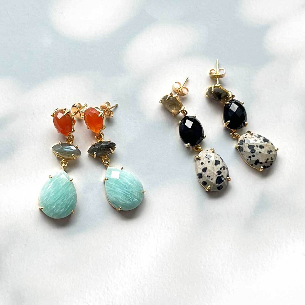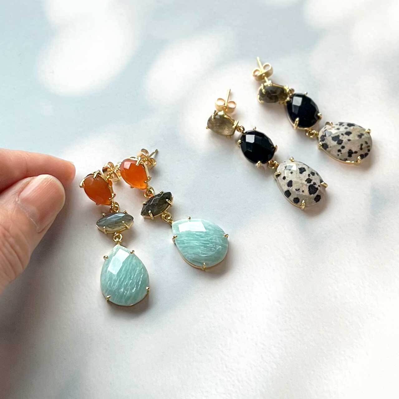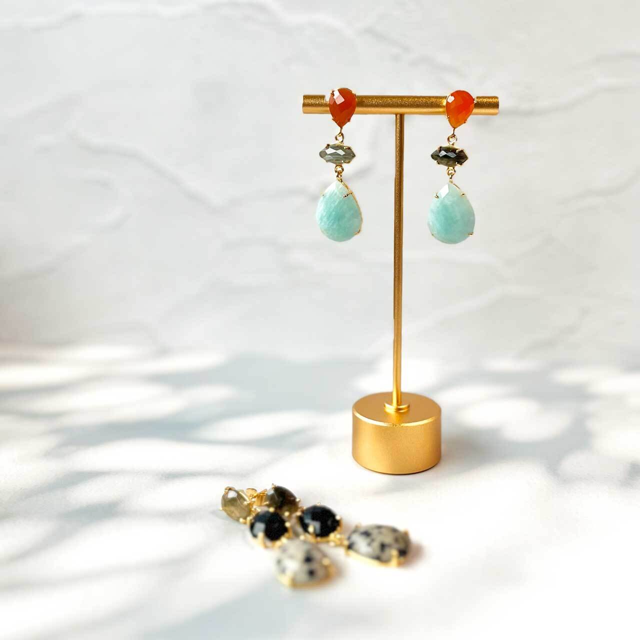 【再々入荷!】トリプルストーンピアス(カーネリアン・ラブラドライト・アマゾナイト)Silver 18KGF