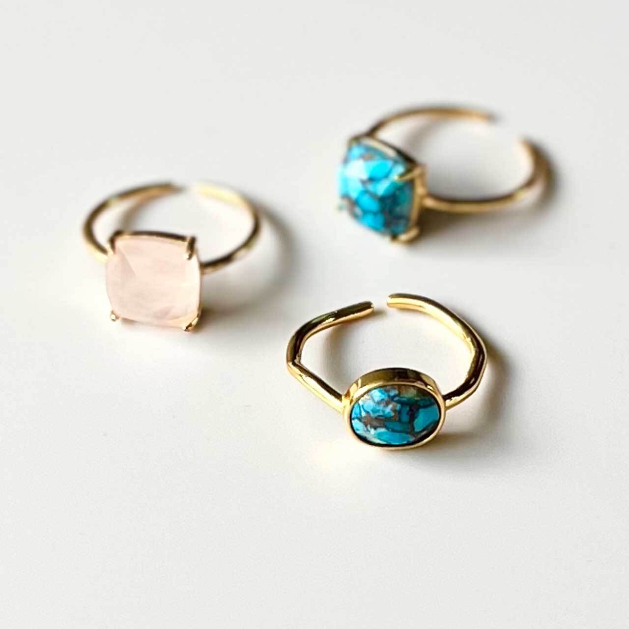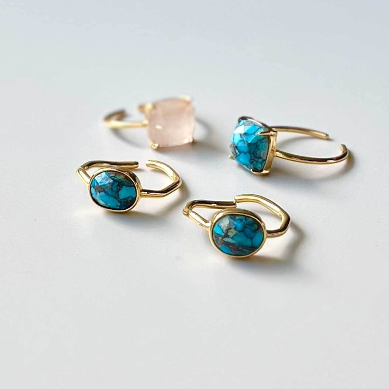 【限定数量】オーバルシェイプ天然石ウェーブリング 『ターコイズ』Silver 18KGF