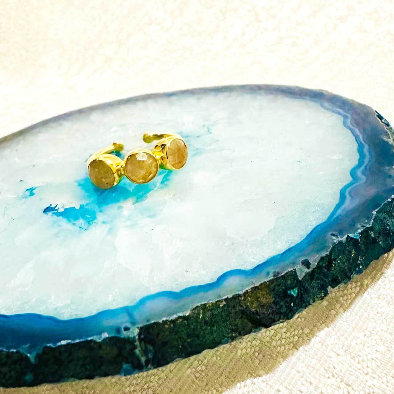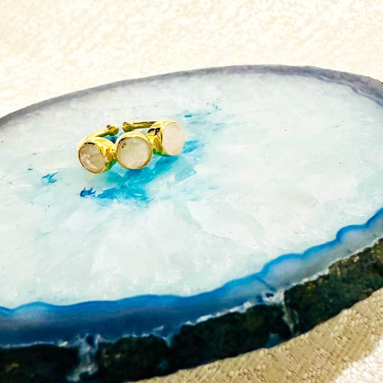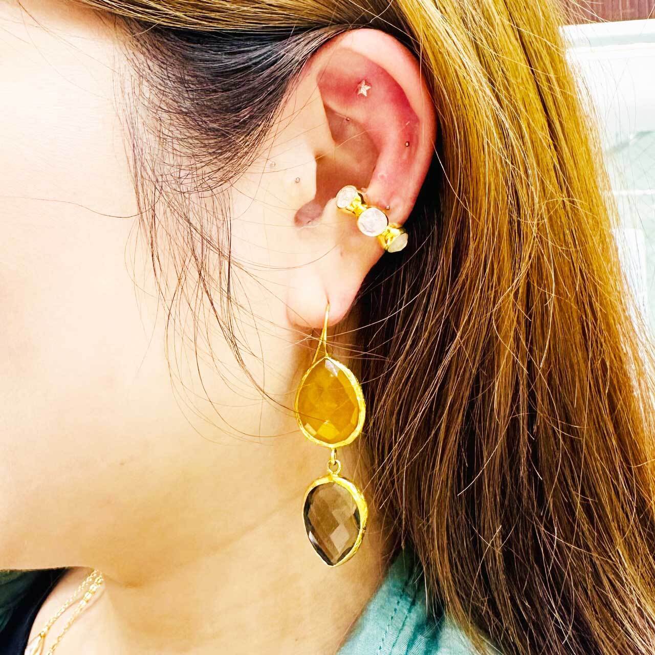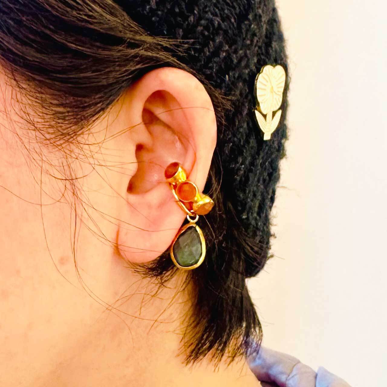 耳元を輝かせるトリプルストーンイヤーカフ。