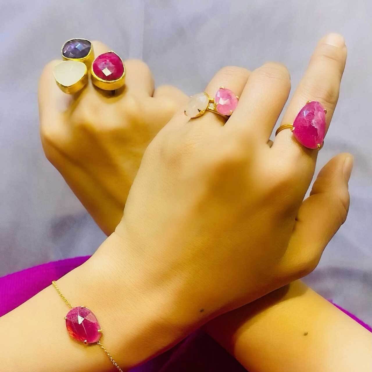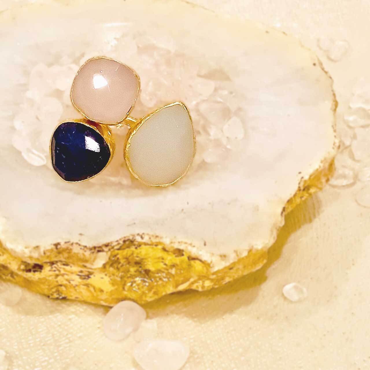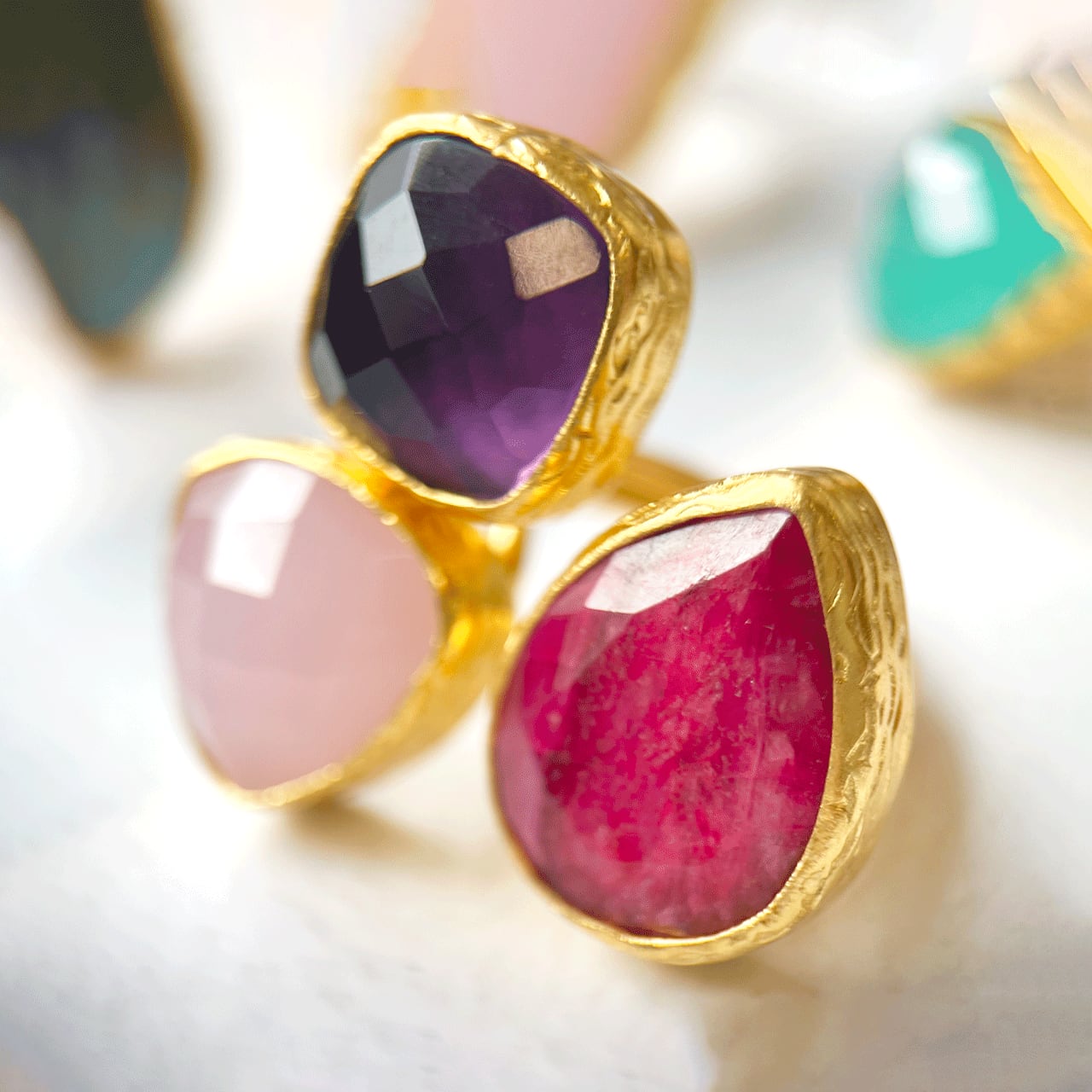 圧倒的な華やぎへ指先を誘う、トリプルストーンリング。