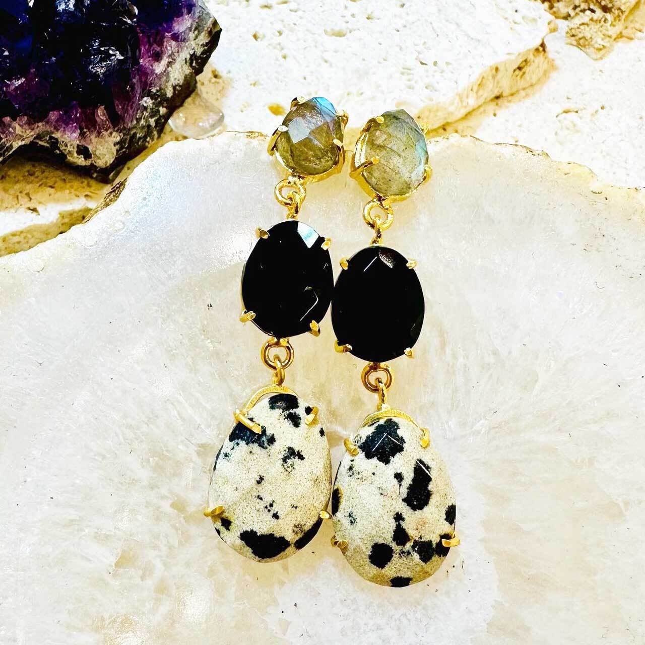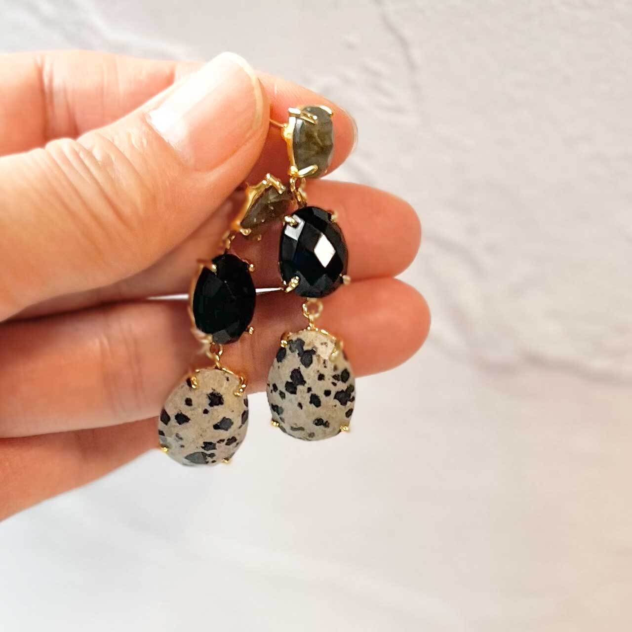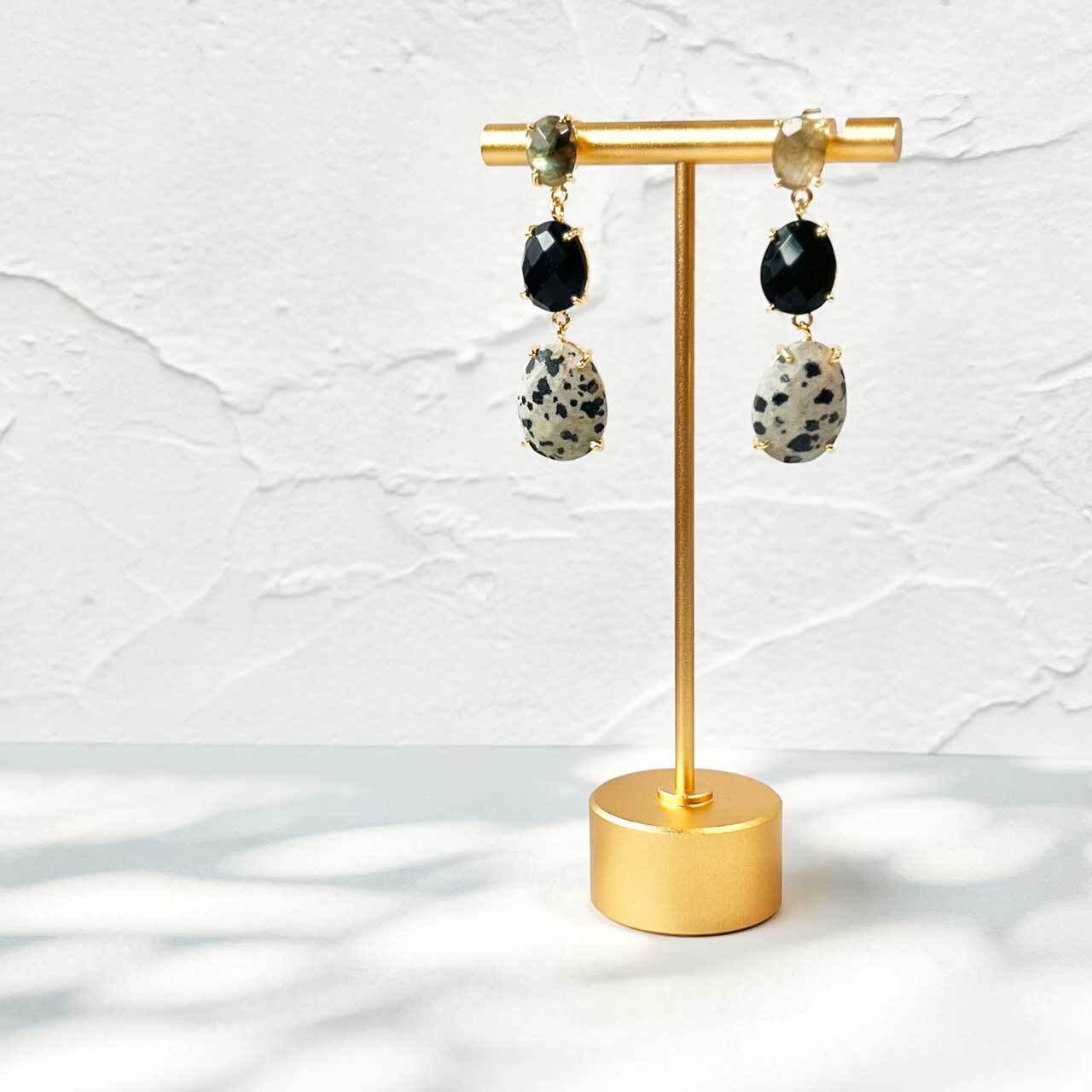 【素材】シルバー18KGF、ラブラドライト、ブラックスピネル、ダルメシアンジャスパー